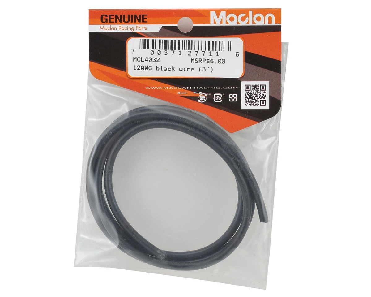 This is a three foot piece of Maclan 12awg Flex Silicon Wire in Black color.