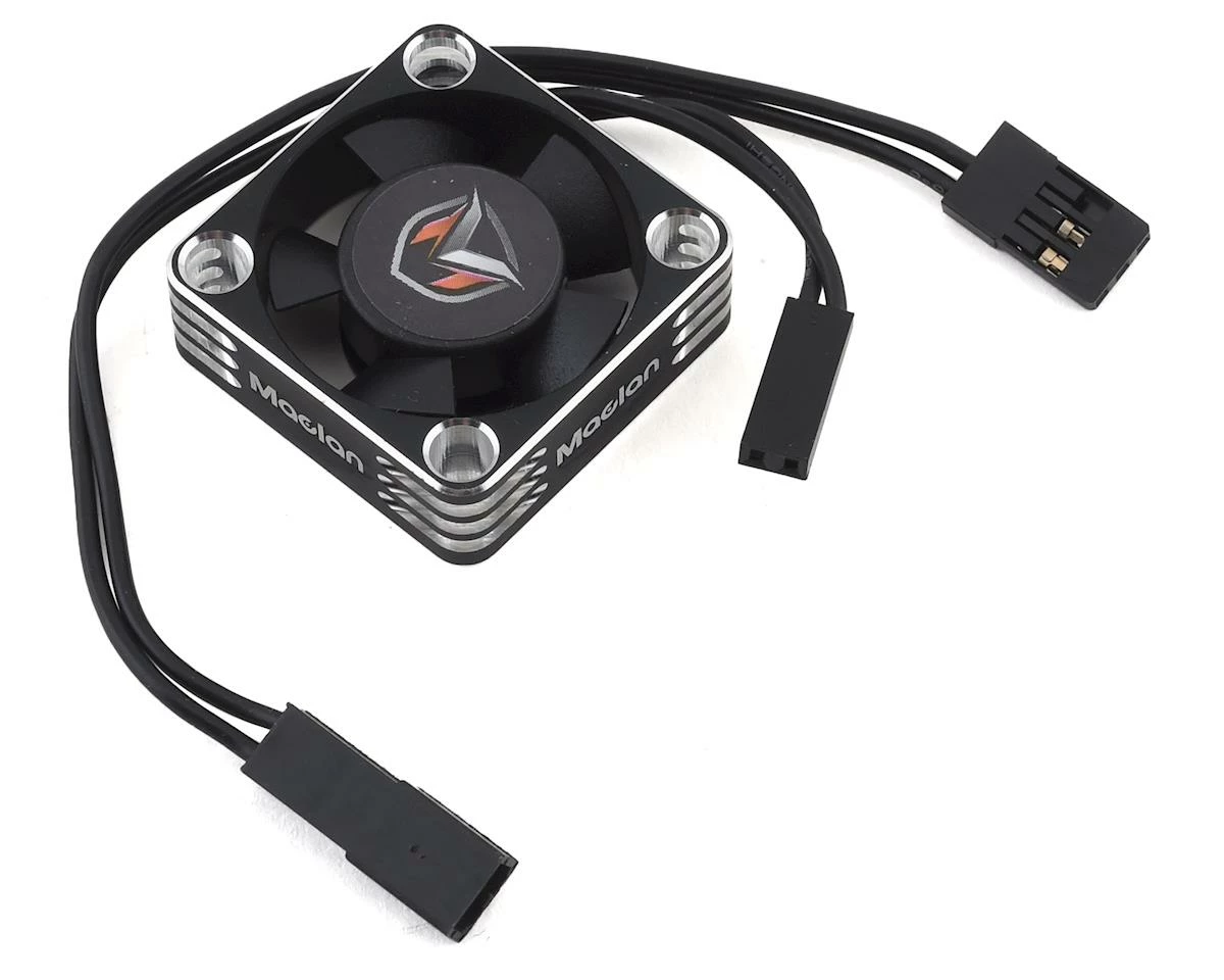 This is a Maclan 30mm Aluminum Hurricane Series HV Motor Fan. This high quality fan features a black anodized aluminum housing, with silver relief cuts that will add a custom touch to your electronics layout. The fan is pre-wired with a JST connector, and an adapter wire with JR connector for receiver connections. Package includes fan and adapter wire.