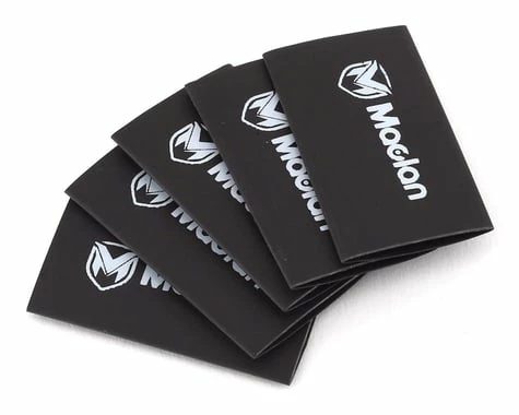 This is a pack of Maclan Cable Management Shrink Wraps. This pack includes five pieces of 40mm x24mm black shrink wrap printed with the “Maclan” Logo in white.