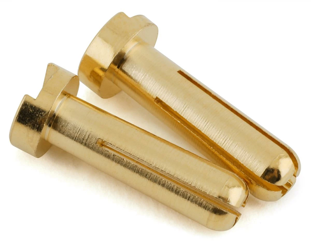 Motiv 5mm Ultra Bullet Plugs. These bullet plugs offer a secure, low resistance connection and have a generous soldering area. Package includes two 5mm Ultra Bullet Plugs.