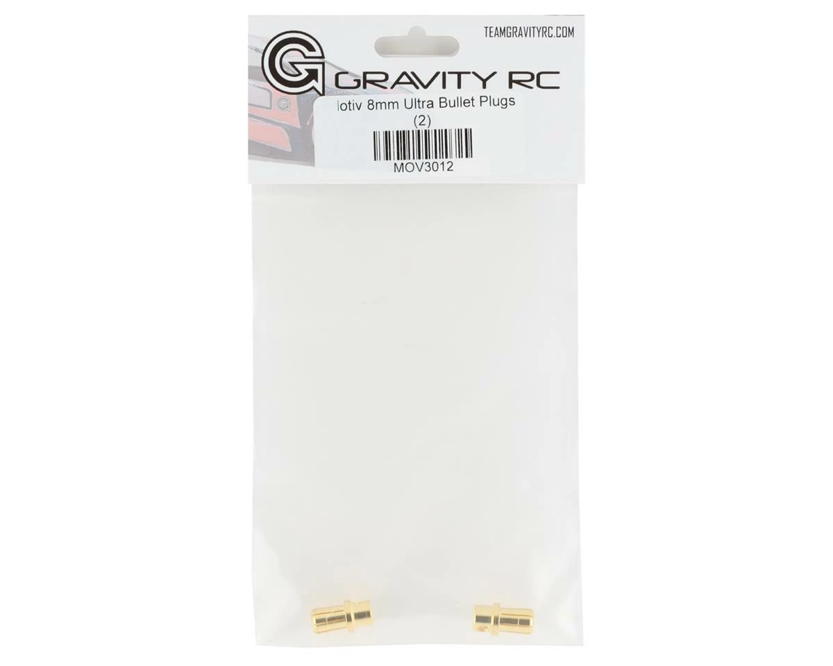 Motiv 8mm Ultra Bullet Plugs. These bullet plugs offer a secure, low resistance connection and have a generous soldering area. Package includes two 8mm Ultra Bullet Plugs.