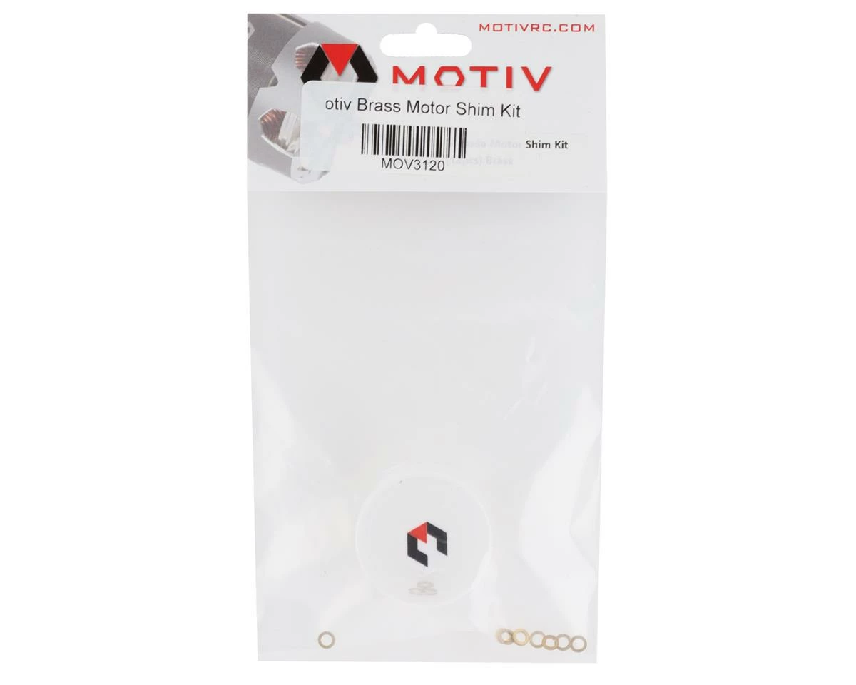 Motiv Brass Motor Shim Kit. This is an optional shim kit intended for the Motiv 1/10 scale motors. Package includes six .55MM shims and six .35MM shims.