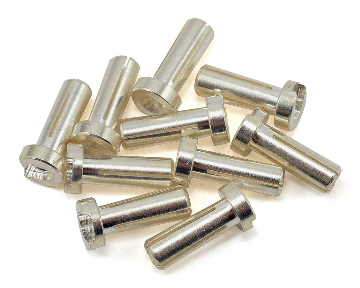 This is a pack of ten Reedy 4mm Low-Profile Bullet Connectors. Reedy’s low-profile bullets feature a flat top for easy soldering, with four contact points and silver plating for a low resistance connection. 14mm length allows compatibility with most socket style batteries that use a 4mm diameter socket. Package includes ten male connectors.