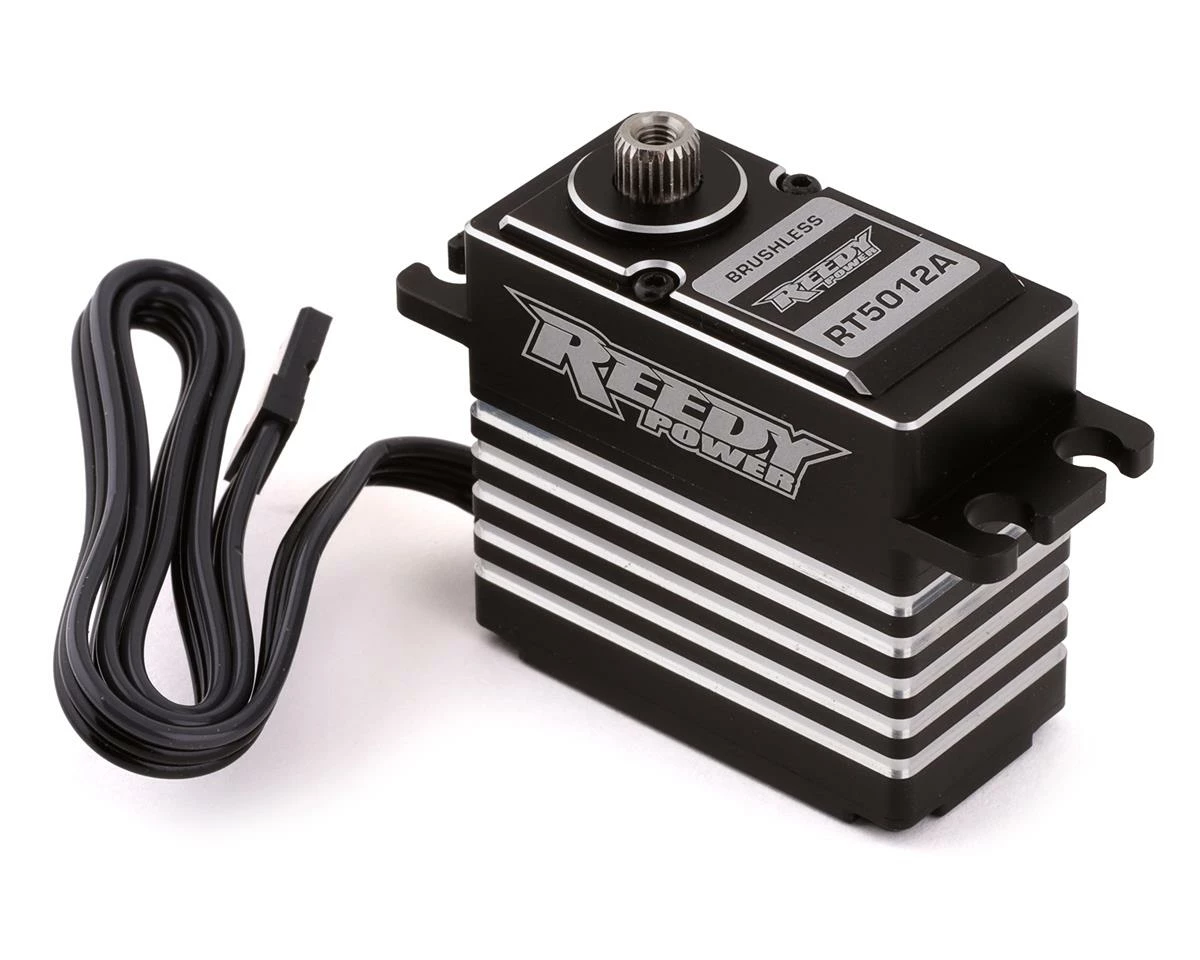 The Reedy RT5012A Digital Hi-Torque 1/8 Competition Brushless Servo is a great choice for racers who want a good combination of performance and durability. An all aluminum case and a full set of metal gears allows you to drive with confidence. Equipped in this servo is an advanced microprocessor to aid in precision steering or throttle control. Package includes one servo, two plastic servo horns and mounting hardware.