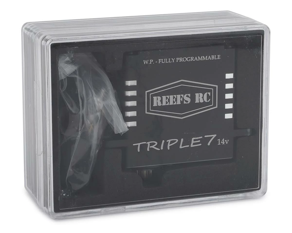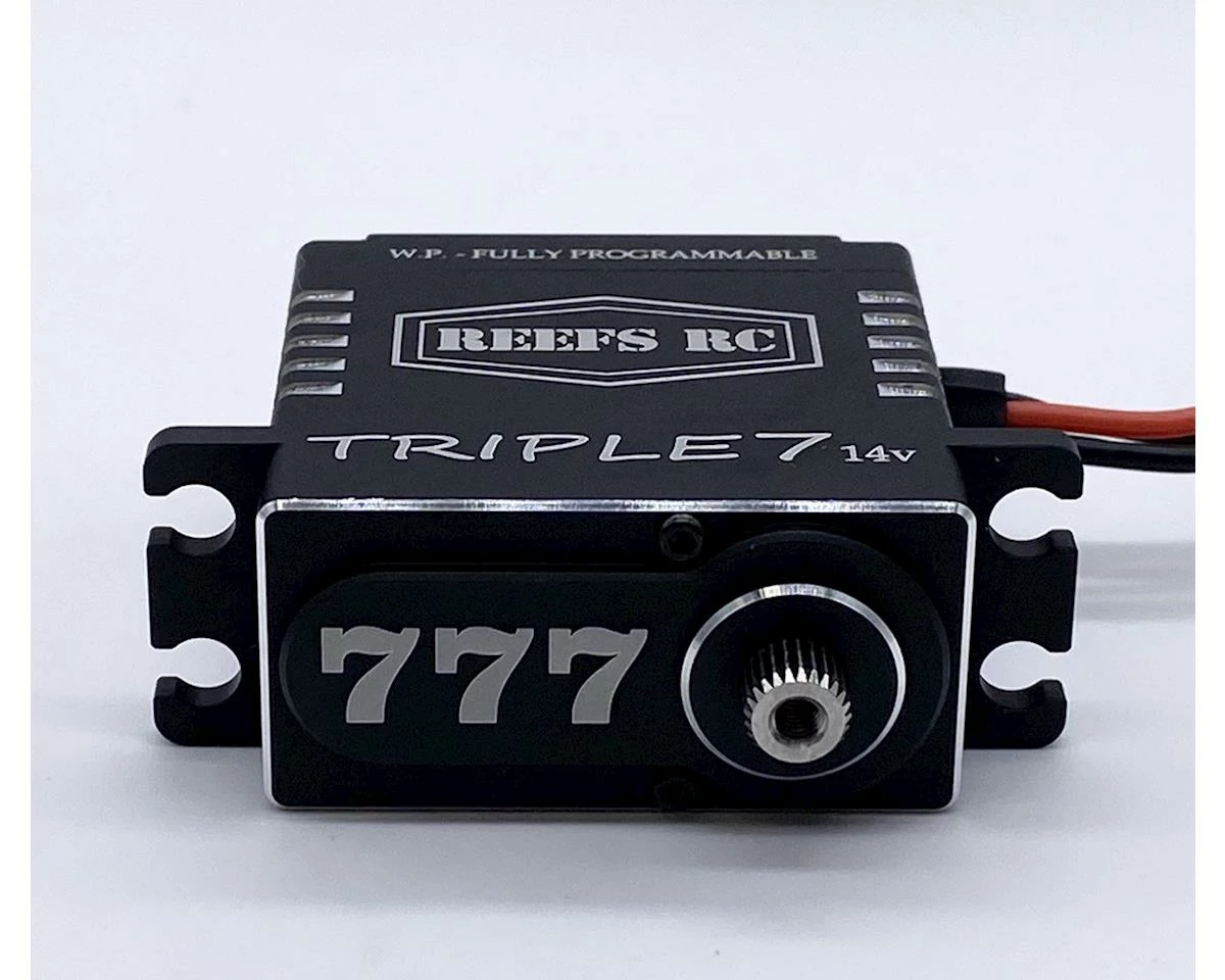 The Reefs RC Triple7 14V Programable High Torque Steel Gear Digital Servo is built from the ground up using a Patented CNC Case and features full programmability utilizing the Reefs USB link (SEHREEFS64 – not included) and REEFS Software. This will allow users the ability to increase output power, adjust the servo angle, sensitivity, inversion and so much more with the click of a button. Plus a variety of available LiPo connectors (SEHREEFS61/SEHREEFS62/SEHREEFS63 – not included), give you the ability to run your battery of choice, without relying on your ESC for power.