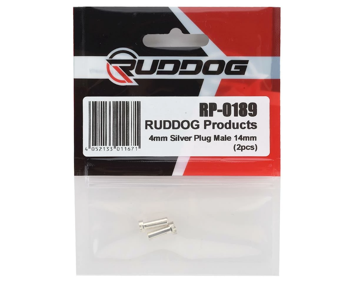 This is a pack of two Ruddog 4mm Silver Bullet Plugs. These male plugs are 4mm diameter and 14mm long.