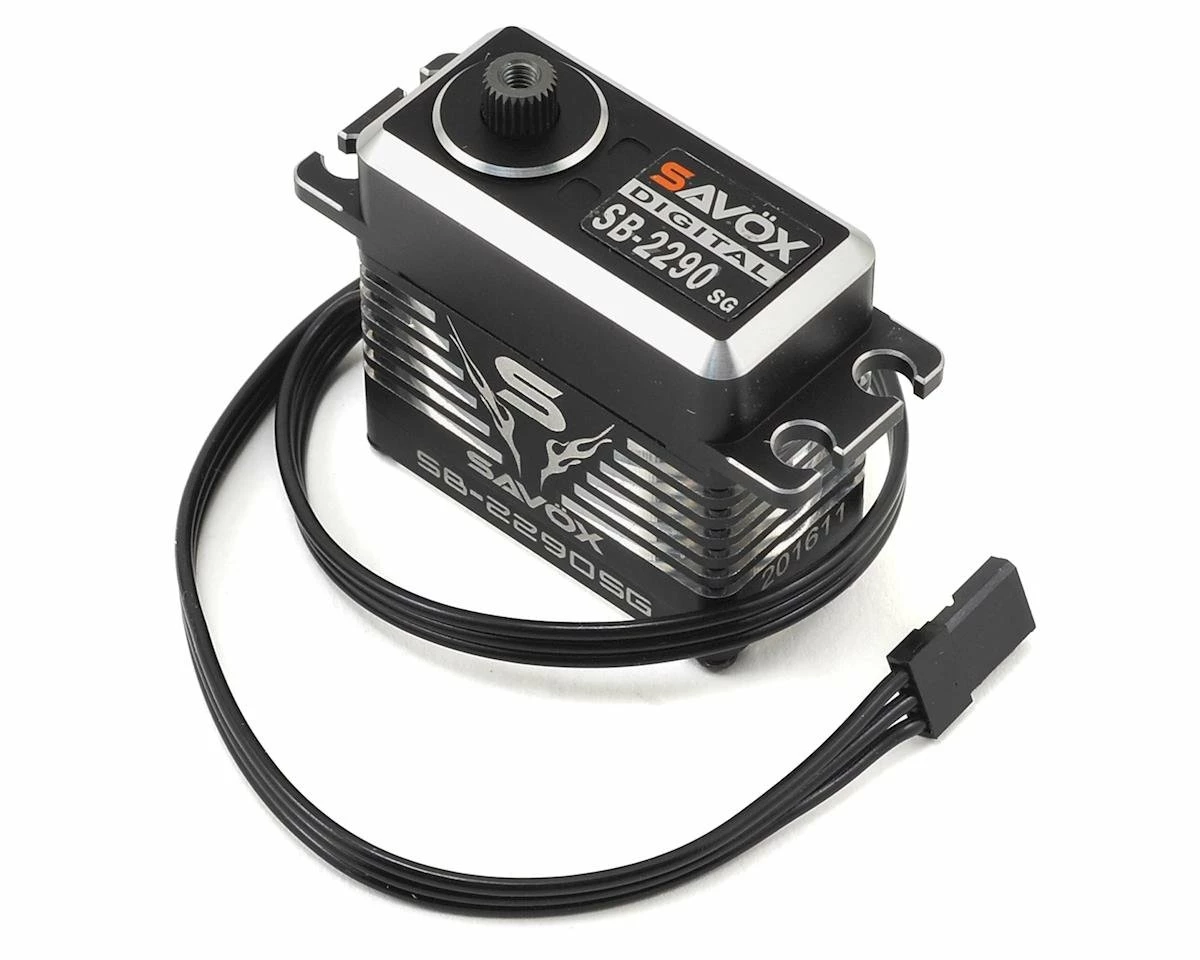 This is the Savox SB-2290SG Black Edition Monster Torque Brushless Steel Gear High Voltage Servo. The Savox Monster Torque servo utilizes a unique brushless motor and controller technology to boost power up to 35% over previous generation servos.