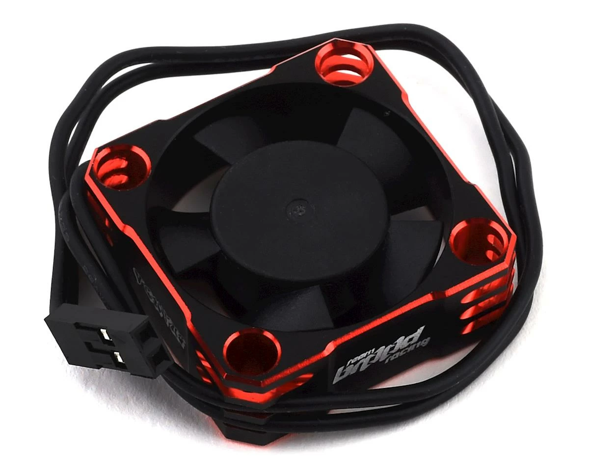 The fan is compatible with 2S HV LiPo systems (8.75V max), has dual ball bearings, and is pre-wired with a 2 pin connector that can be plugged directly into the receiver or another source of power. This fan can be mounted with double side tape, but the optional Brood Machined Aluminum Fan Mount is recommended (not included – BRO-TBR-CNCFANCMOUNT). With all these features combined, this fan is an excellent choice for ESC and motor applications ranging from 1/12 to 1/8 scale.