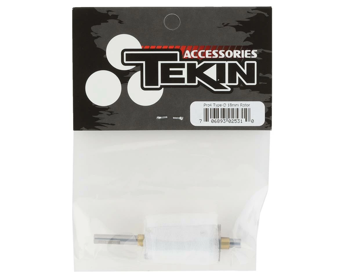 Tekin Pro4 Type-D 18mm Tuning Rotor. This is an optional rotor intended for the Tekin Pro-4 Type-D series of motors. This rotor is designed to provide smooth power delivery on low to medium traction surfaces and increase RPM slightly. Package includes one 18mm rotor.
