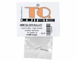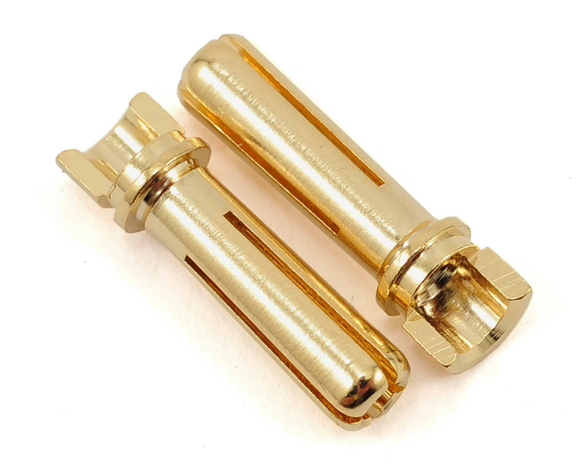 This is a pack of two TQ Wire Gold 4mm Narrow Top Male Bullet Connectors. These connectors feature a better clearance for Touring Car top decks and 1/12 scale shock mounts. Ideal for flat or in-line soldering.
